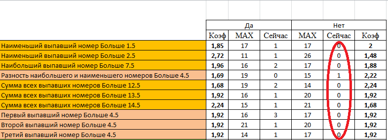 Теперь у нас нули в левой части таблицы. «КАЧЕЛИ» продолжаются. Но в данном случае ставки сыграют только в 236837 тираже.